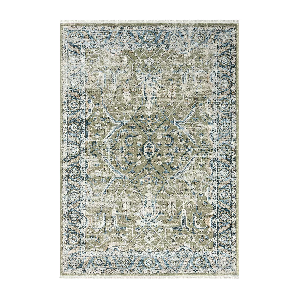 This ornate rug was inspired by vintage styles, but the design is truly timeless. The dark blue and forest green mimic the natural colors of the earth, creating an organic look and calming atmosphere. The patterns are intricate yet subtle, allowing it to blend perfectly with any room. If youre searching for the piece to bring your room together, you cant go wrong with this design. All rug sizes are approximate and should measure within 2-6 inches of stated size. Pattern may also vary slightly. This rug does not have a slip-resistant backing. Rug pad recommended to prevent slipping on smooth surfaces.