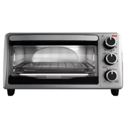 The BLACK+DECKER 4-Slice Stainless Steel Toaster Oven is a must-have on any kitchen countertop. This compact, versatile toaster oven bakes, broils, toasts, and keeps food warm, at up to 450°F and comes with a baking and broiler pan that fits perfectly into the small toaster oven interior.