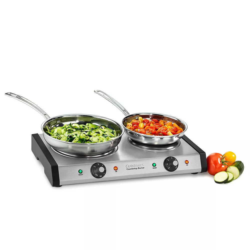 Practical and easy to use, this Cuisinart double burner heats food in no time.