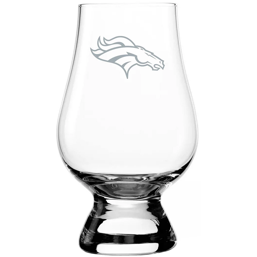 Celebrate the latest Denver Broncos win by drinking from this Glencairn whiskey glass. With etched graphics showing off your team pride, this is the perfect addition to any Denver Broncos fan’s cupboard.