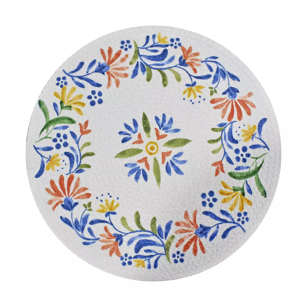 The Mediterranean-inspired floral print of this Sorrento round placemat makes it a perfect centerpiece or place setting option.