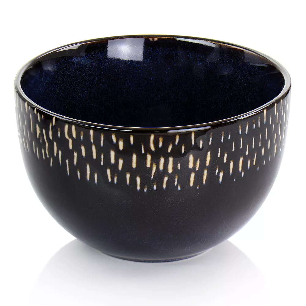 The Home Trends Matisse 4 Piece 5.25 Inch Stoneware Bowl Set in Cobalt lets you cozy up at home with your favorite meals. The soft reactive glaze texture features a deep and vibrant cobalt hue with a fur like pattern. The stoneware body helps retain warm and cool temperatures along with a quality weight you can feel. For everyday convenience, this bowl set is dishwasher safe and microwave safe. Enjoy hot soups, personal servings of fruits, or a nice bowl of ice cream at the end of the day.