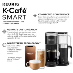 - WiFi & APP COMPATIBLE: Connecting your K-Café SMART to WiFi via the Keurig app allows you to brew from anywhere, schedule a brew, customize your brew settings, and create and save favorite settings via the Keurig app. It also enables you to manage your SMART Delivery via the app, so you never run out of your favorite K-Cup pods.