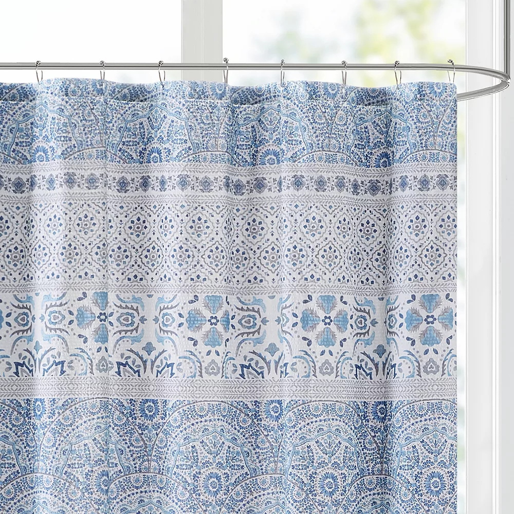 Perfect the look and feel of your bathroom decor with this stylish Madison Park seersucker printed shower curtain.