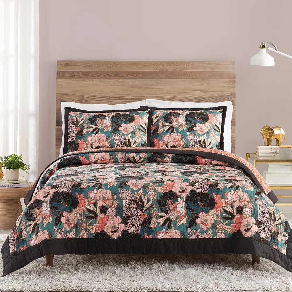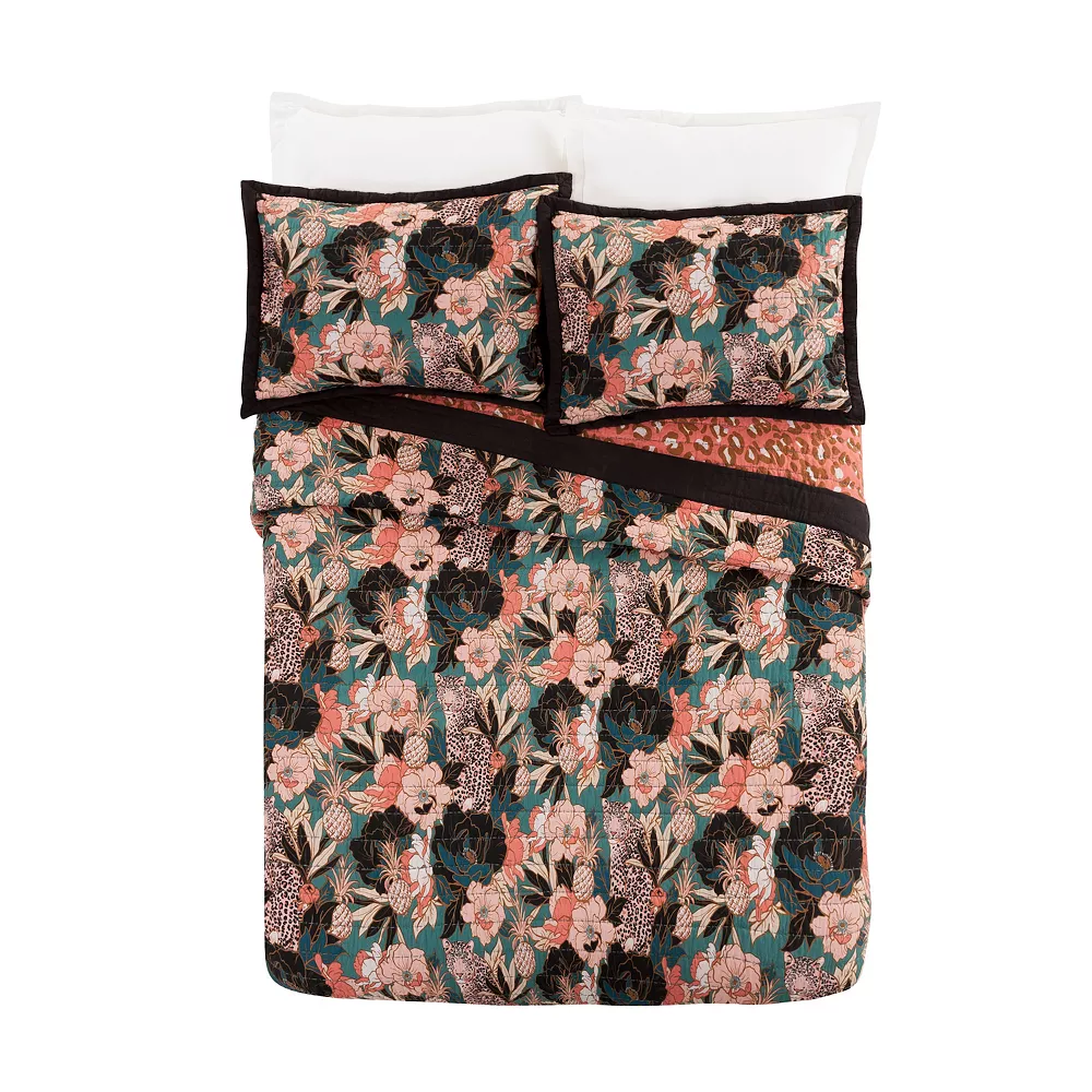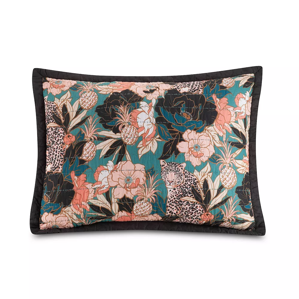 - The pattern features a wildly fun mix of florals, pineapples, and stealth leopards. Made of cotton fabric and fill, it will bring a bold, luxurious, and elegant look to your bedroom.