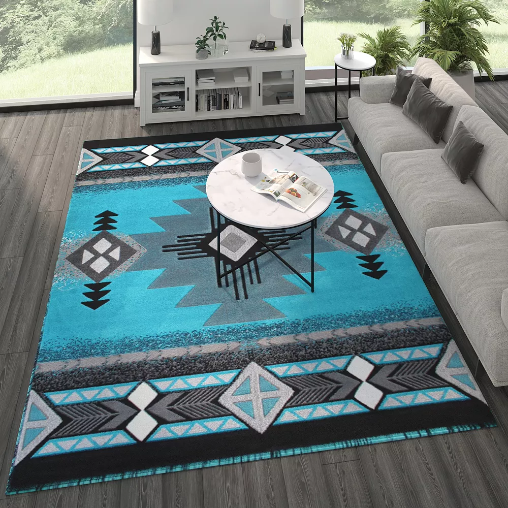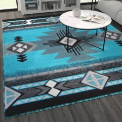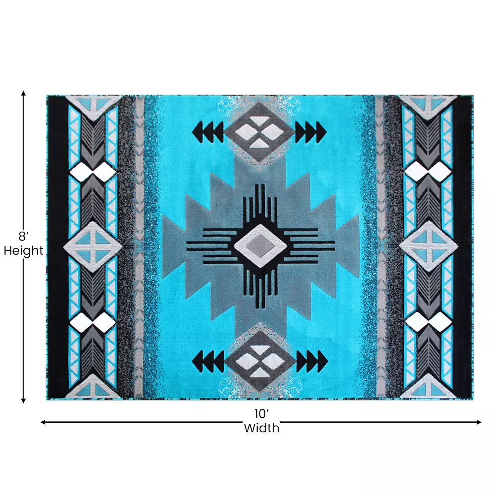 - Southwestern Print 8’x10′ Area Rug in Turquoise