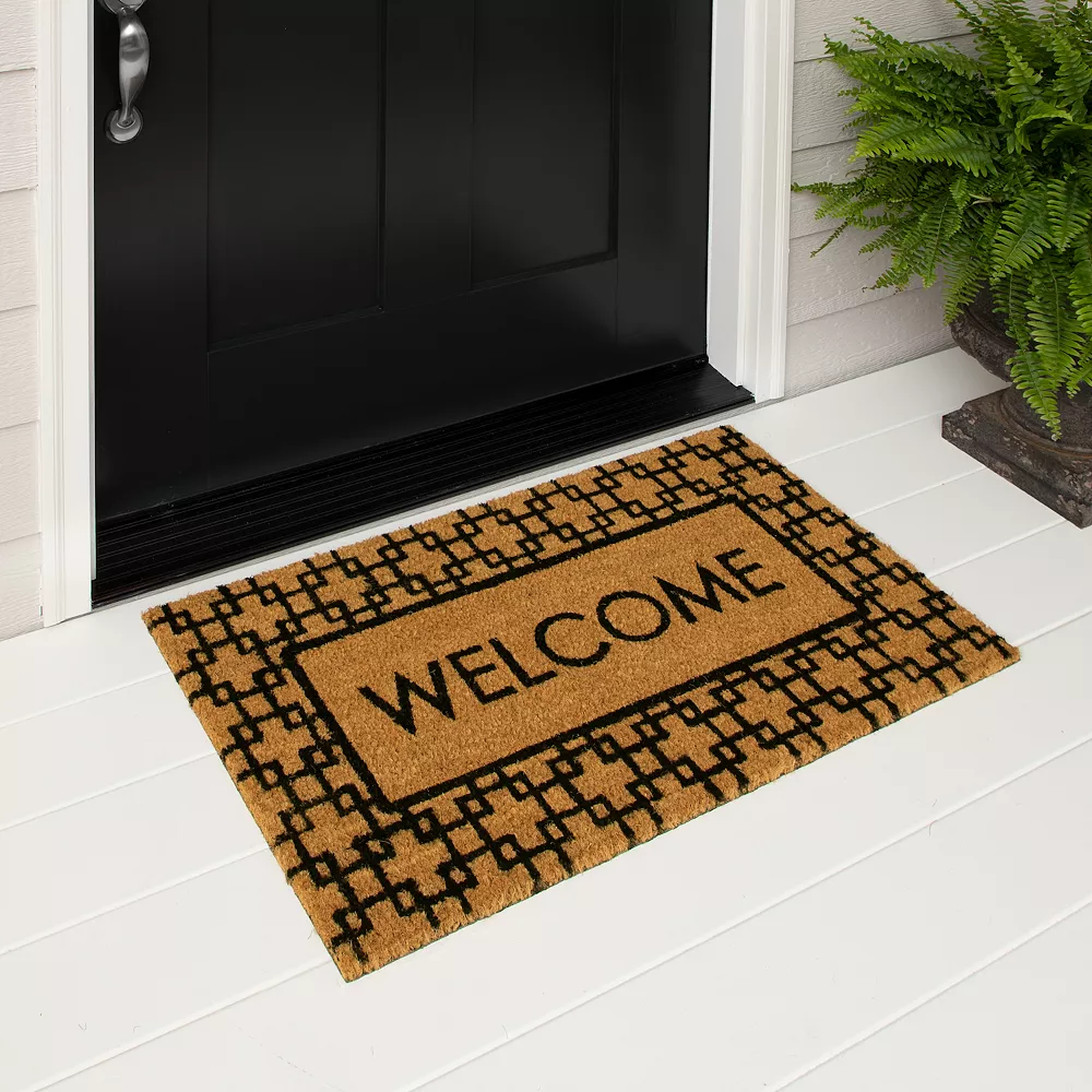 Welcome guests to your home with this Mohawk Home Century Fret Coir doormat. In natural.