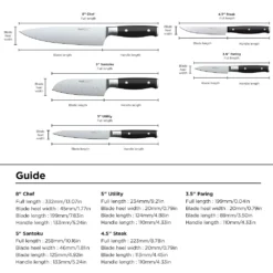 - Premium blades forged from German stainless steel are rust-resistant and strong enough for all your kitchen tasks.