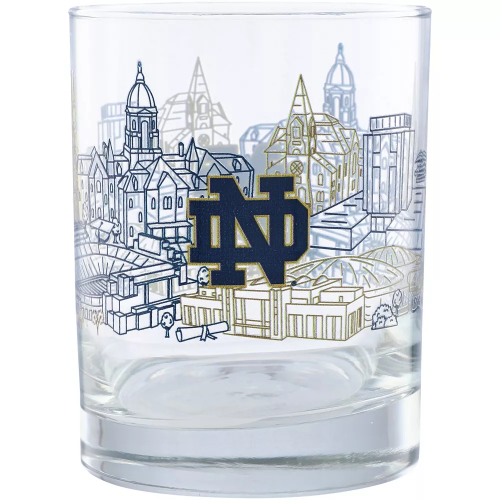 Raise a glass to another Notre Dame Fighting Irish victory with this Campus Line Art rocks glass. The bold printed graphics make this the perfect way to enjoy your favorite game day beverage. Bring the flair of your college colors to your kitchen cabinets when you add this sleek drinkware to your collection.