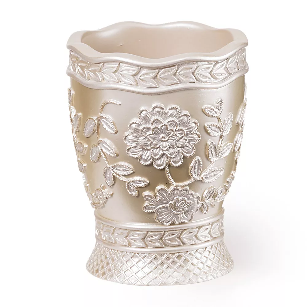 Add a chic look to your existing bathroom decor with this stunning Popular Bath rose vine tumbler.