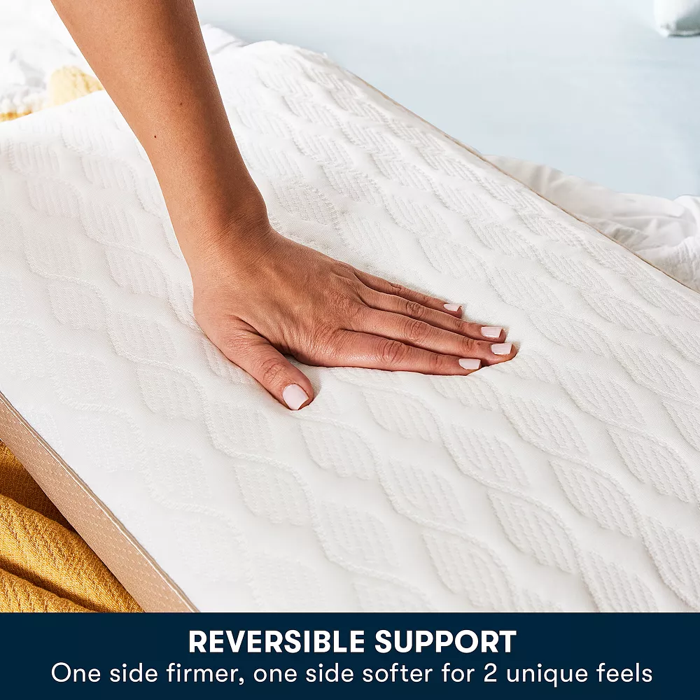 Customize your sleep with a 2 in 1 choice of feel—firm support on one side, softer support on the other—making it easier to find the comfort you need for deep sleep.