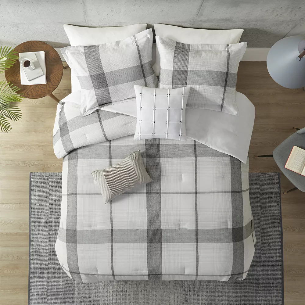 Redefine the look and feel of any space with this stylish Urban Habitat Sidney 5-piece Cotton Yarn Dyed Jacquard Plaid Comforter Set with Shams.